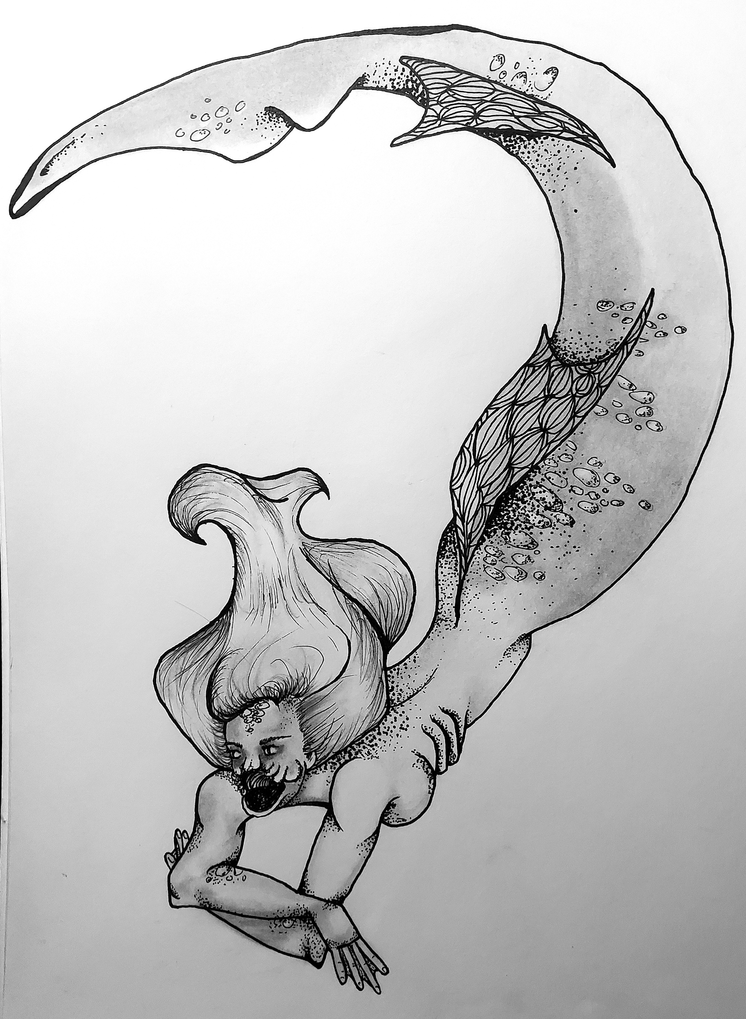 These are some drawings I created and then digitized for a short book. It has an underlying dark theme, as it follows a boy from an abusive household who discovers a mermaid in the pool. The story shifts as the boy then decides to find the lake where the mermaid is from and they return, only for him to join her in the depths.